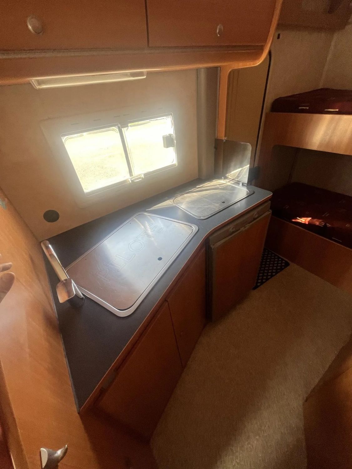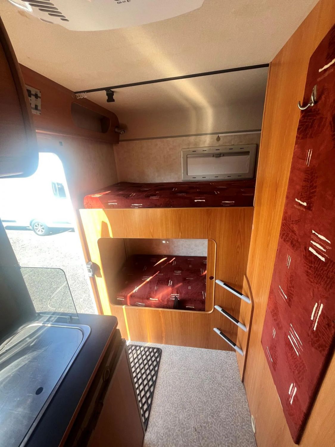 Zona de descanso con cama en capuchina (2 plazas), dos camas en salón (2 + 1 plazas) y literas traseras (2 plazas)