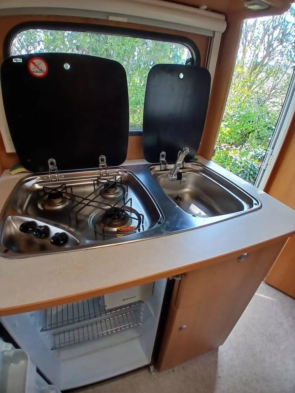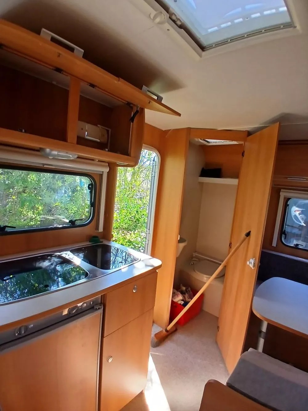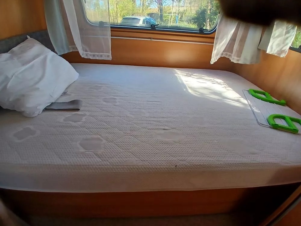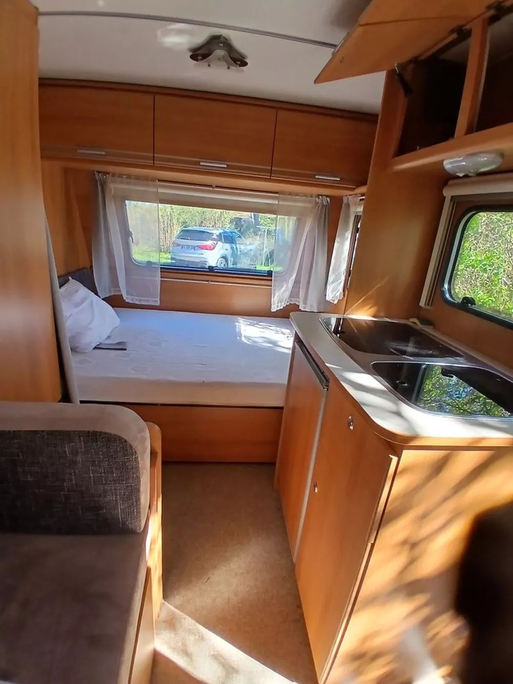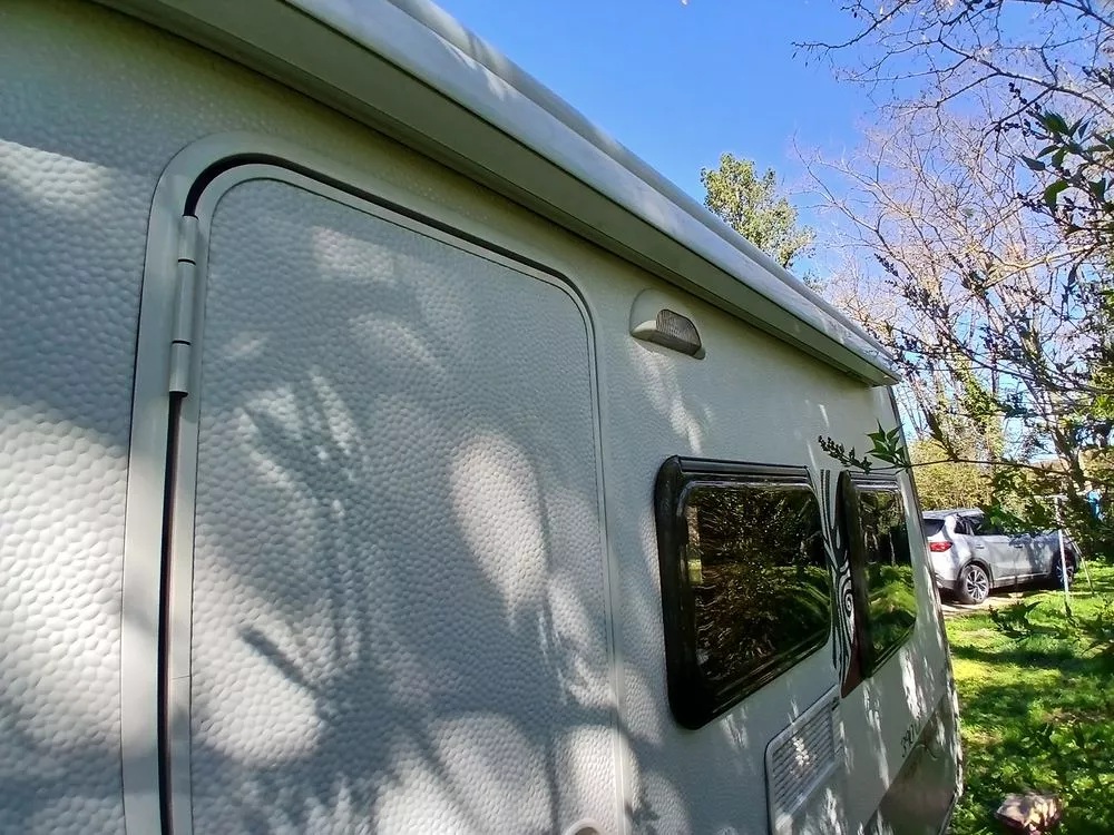 Caravana Sterckeman Easy Board Cama transversal con arcón inferior Salón convertible en cama individual Cocina equipada con 3 fuegos a gas y frigorífico Baño con WC tipo cassette Toldo exterior